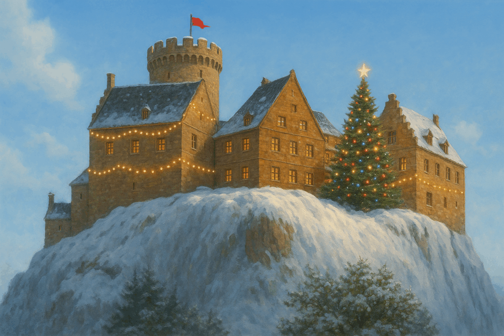 Unsere Siegesburg, weihnachtlich geschmückt.